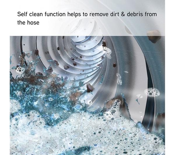 - The self-clean function flushes the hose out to get rid of debris and hair, so it'll be ready to go the next time you need it