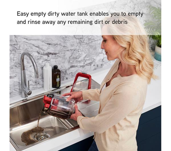 - The dirty water tank has a large opening so it's super easy to empty down the sink