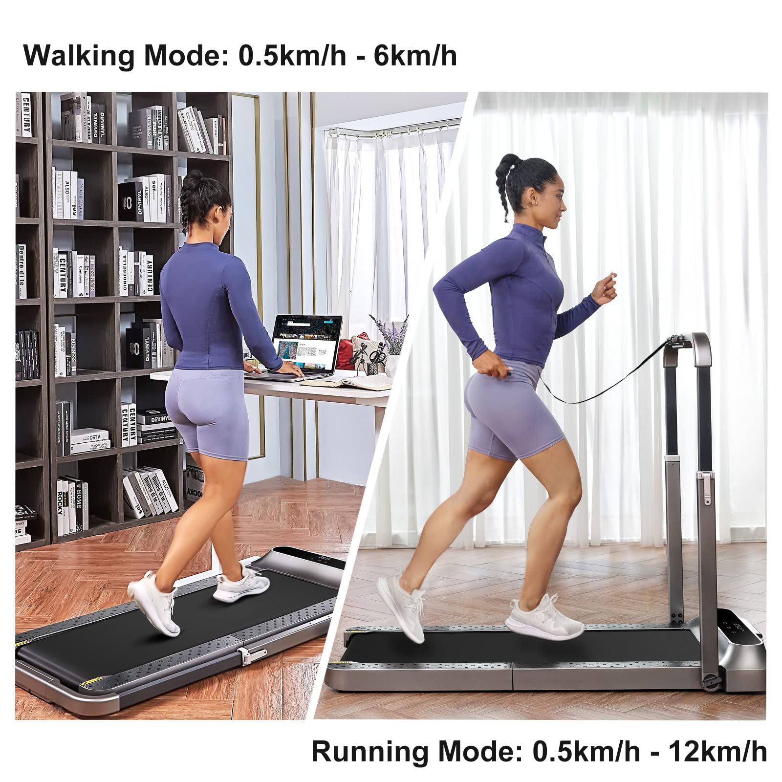 - Enhanced Safety Features - Adjust your speed in 0.5 km increments using the remote or app, and enjoy under desk treadmill R2 generous 44 x 120 cm running area, anti-slip footrests, and sturdy handrails to reduce fall risks. Plus, with an emergency stop cord and child lock in the app, you can enjoy peace of mind with every workout.
